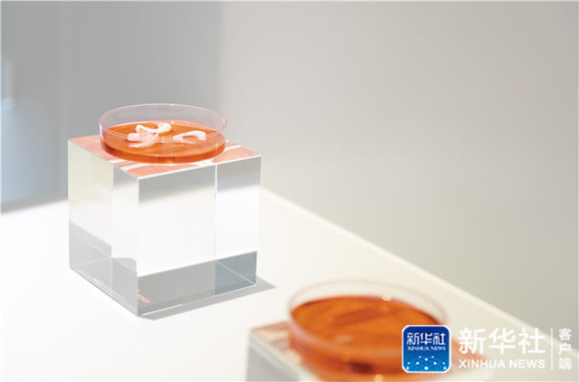 ↑袁玉宇介邁普再生醫學科技公司最新研發的產品(2月3日攝)。新華社記者 周自揚 攝