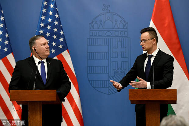 蓬佩奧(左)與匈牙利外長西亞爾託在聯合記者招待會上 @視覺中國