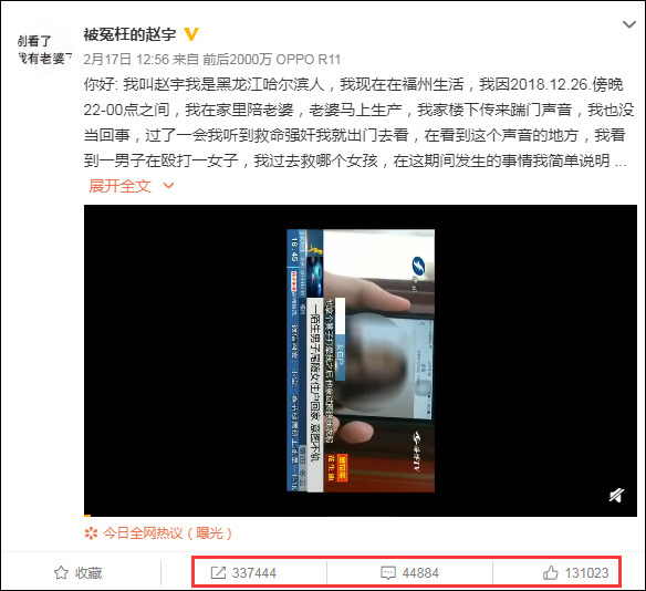 2月17日,趙先生將事情的來龍去脈發在了微博上並連發十多條相關內容維權,目前轉發人數已超過30萬。