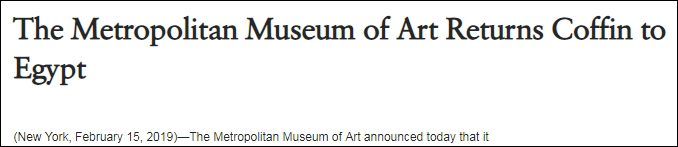 紐約大都會博物館15日發表聲明,稱將向埃及歸還棺木