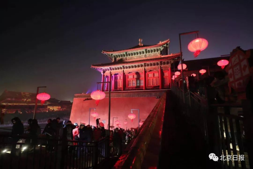 當遊客走過佈滿紅燈籠的故宮東城牆時,可以看到臨近城牆西側的部分古建築也被點亮,暢音閣戲樓傳來抑揚頓挫的戲曲聲。