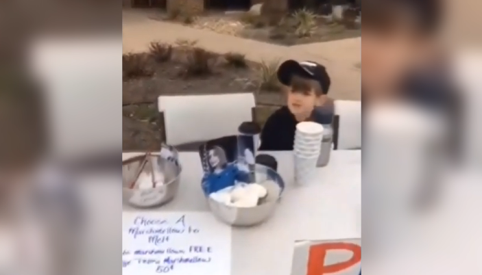 據福克斯8台2月19日報道,日前,得克薩斯州一名7歲男孩本頓在美國引起熱議,他在自家門前擺起攤頭,出售自己製作的熱巧克力飲料,想要為美國總統特朗普日思夜想的“美墨邊境牆”添一份力。