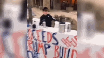 本頓説幹就幹,還帶動了所有家庭成員,父母給他搞了個小攤,他的哥哥給他寫了標語,母親和他準備起了食物——熱巧克力和棉花糖。其中小號的貝託(得州議員)棉花糖免費,大號的佩洛西(美國眾議院議長)棉花糖50美分。