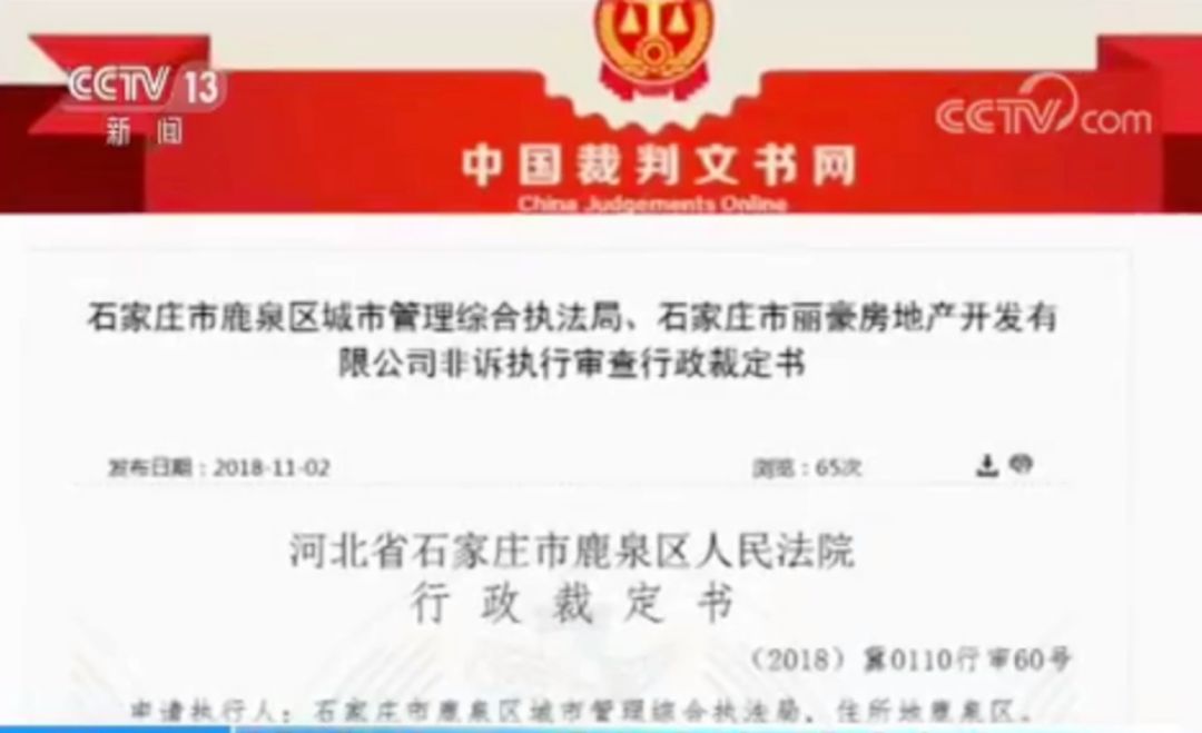 在中國裁判文書網上,一份石家莊鹿泉區法院的行政裁定書顯示,2017年,石家莊鹿泉區綜合執法局認定該項目擅自開工建設了109棟樓,對其罰款600餘萬。