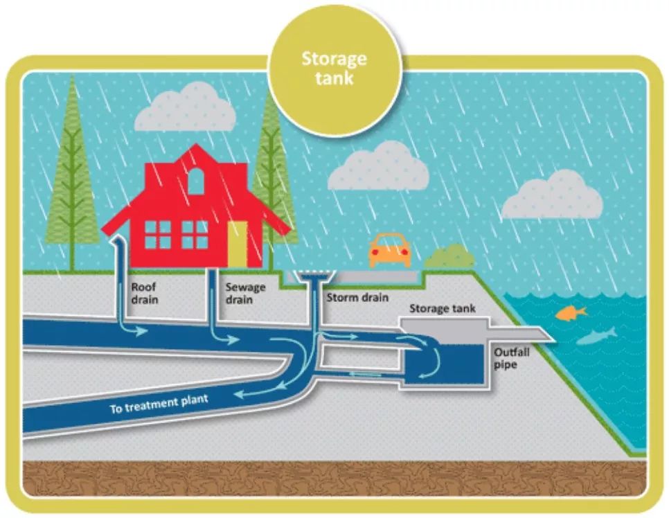 今天的第二個知識點,叫合流制。以前沒有那麼多費用的時候,我們會把雨水和污水放到同一條溝裏排出去。