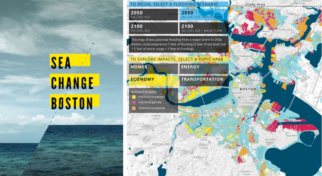 這是一個叫SASAKI的景觀公司,颱風之後給波士頓做的新規劃。他們認為一百年後潮水會頂上來,同時會有更極端的暴雨,城市在這樣雙重壓力的擠壓下,是負擔不了現在的功能的。所以需要知道城市裏哪個地方是安全的,哪個地方人是要遷走的。