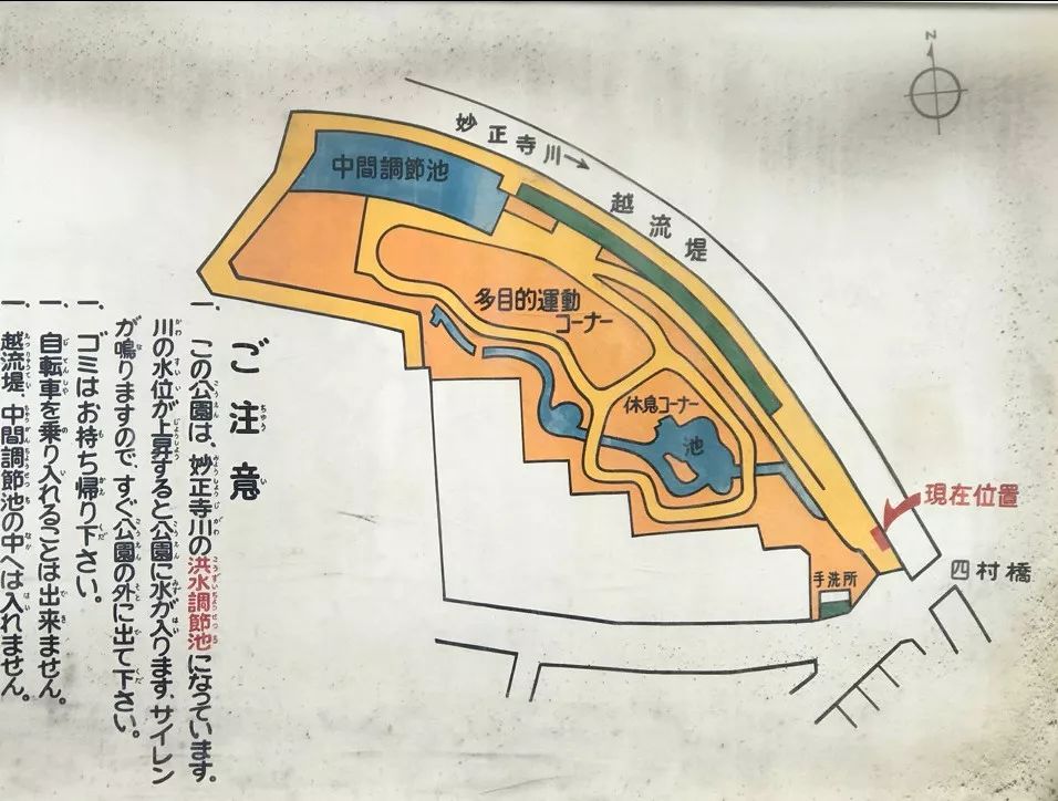 這是妙正寺川整個小區的一層,這一層平時就是一個活動空間,有人去踢球,有人去玩,但是真正暴雨下來的時候就會馬上全部被淹掉。