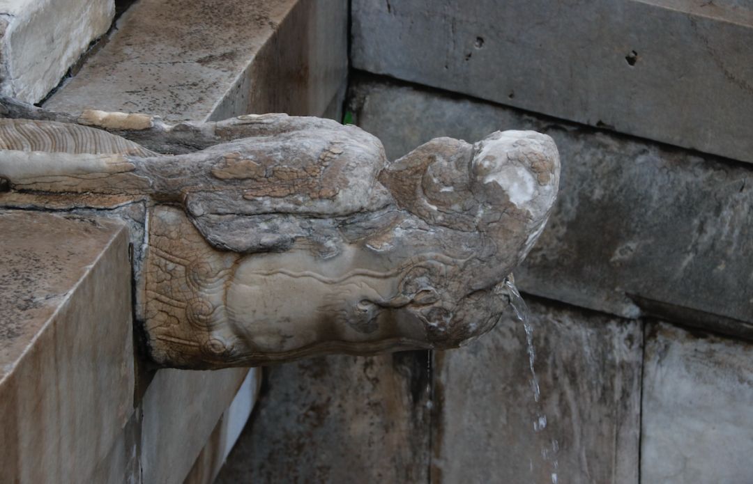 故宮的水會排到護城河,他們挖那個河也是為了有排水的道。甚至後邊的什剎海公園,相關的河道連通,都是為了把水排走。我們看到故宮那個龍吐水的排水管道很驚異,但其實不積水的主要原因,是它有很多路面的漫流通道。