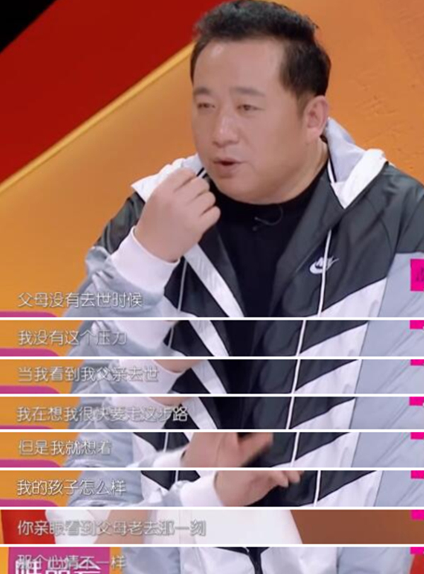 “你今年30歲,你不會琢磨,你60歲你都不會想,因為你老會覺得,有一堵牆,擋在你和死神面前,你看不到死神。父母一沒,你直面死神。”