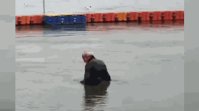 據新德里電視台24日報道,當天莫迪穿着一套印式長衫,在事先標記過的河域內進行了祭河神儀式,期間他雙手合十,幾次潛入水中。