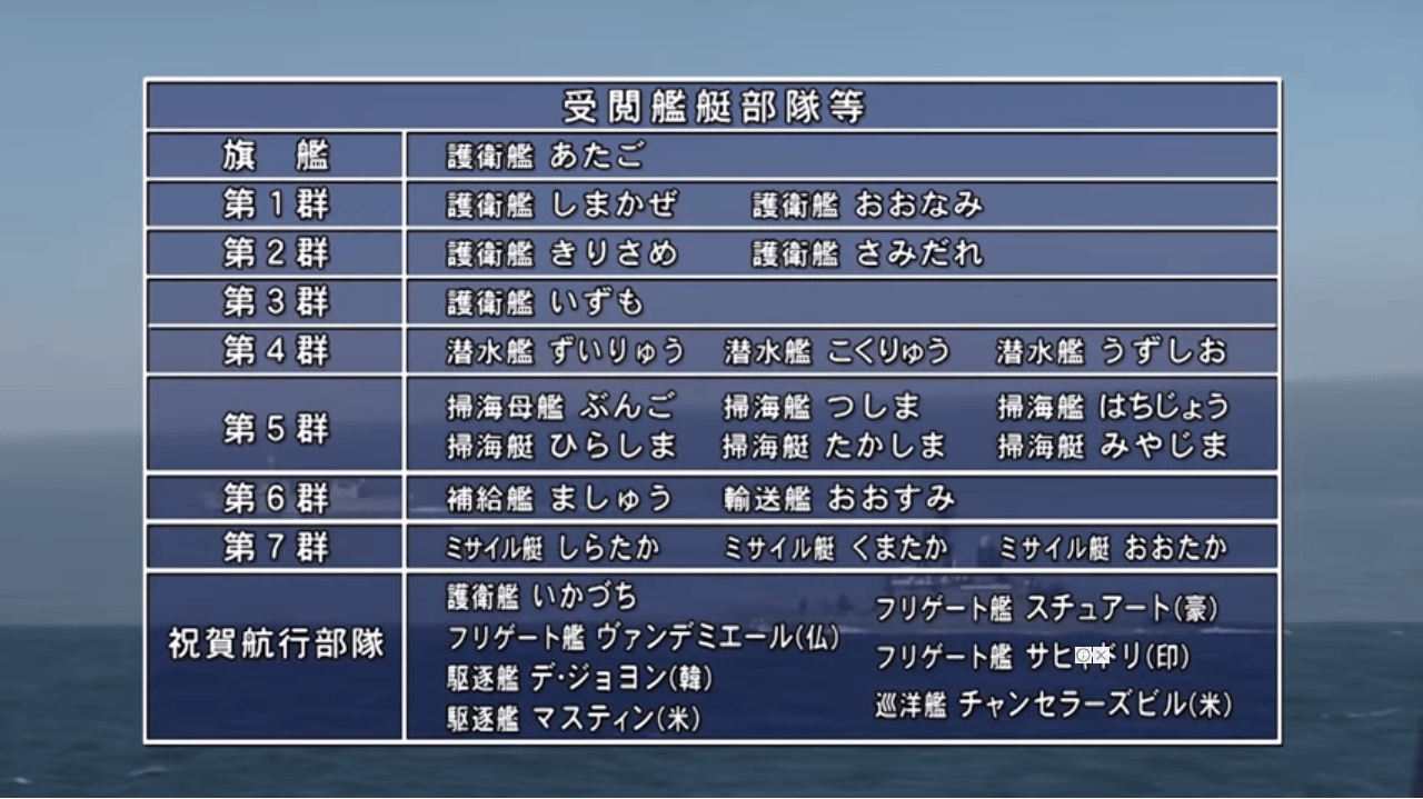 2015年自衞隊閲艦式受閲艦艇(視頻截圖)