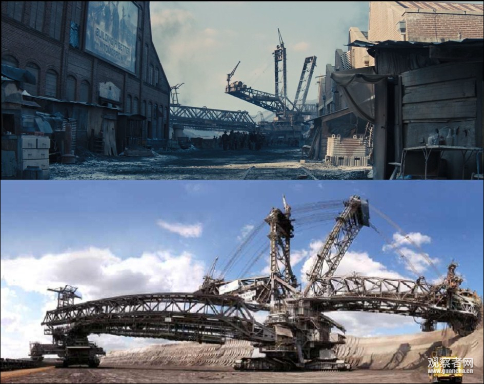 為描述《飢餓遊戲》世界觀中負責煤礦開採的第12區樣貌,製作方在背景中加上了Bagger 288的樣子。