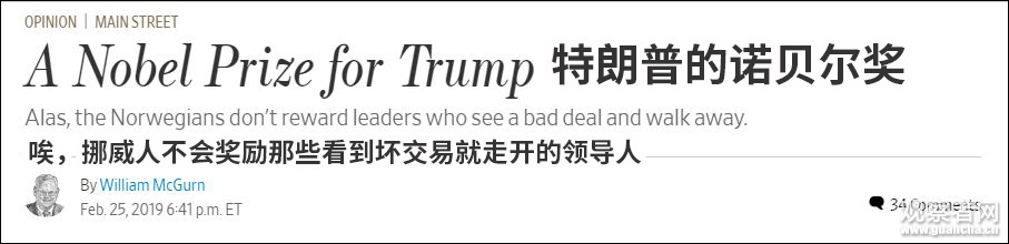 《華爾街日報》2月25日的文章就以《特朗普的諾貝爾獎》為標題,探討了越南再次催生諾貝爾和平獎的可能性。