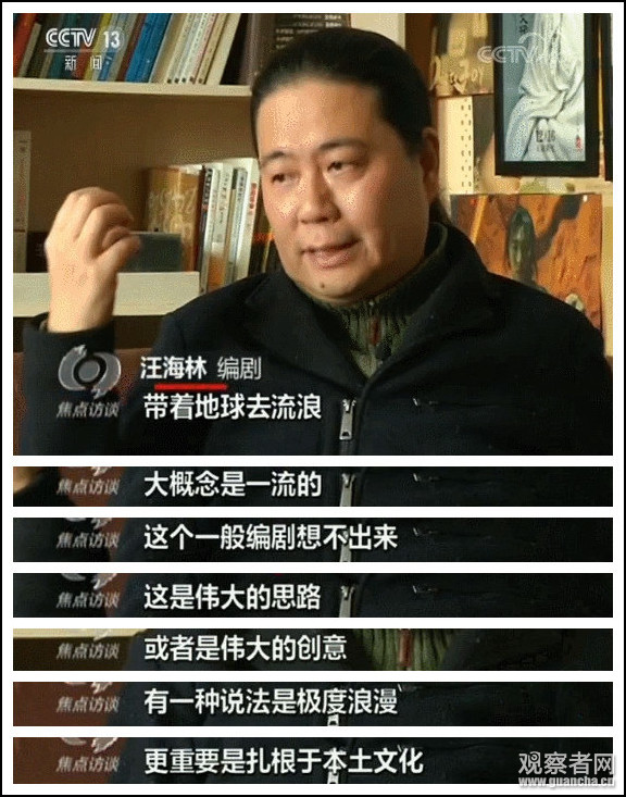 編劇汪海林説:“帶着地球去流浪大概念是一流的,這個一般編劇想不出來,這是偉大的思路或者是偉大的創意,有一種説法是極度浪漫,其實更重要是紮根於本土文化。”