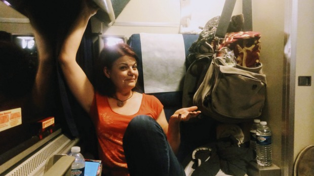 乘客們在被困的火車上等待救援。照片由乘客麗貝卡 · 多德森( Rebekah Dodson)提供