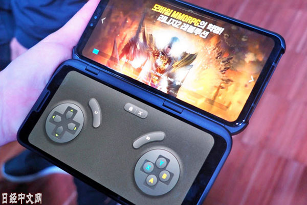日本經濟新聞指出,另一個引人關注的設計是韓國LG的分拆型,裝上另售的帶顯示屏的手機殼,即變為2個屏幕。該公司在會場展示了用於賽車等遊戲的用途。在下方屏幕上顯示操作面板,上方屏幕顯示遊戲畫面。