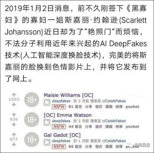 這類AI換臉視頻兩年前從國外論壇流傳開來,而國內也有不少仿效者。