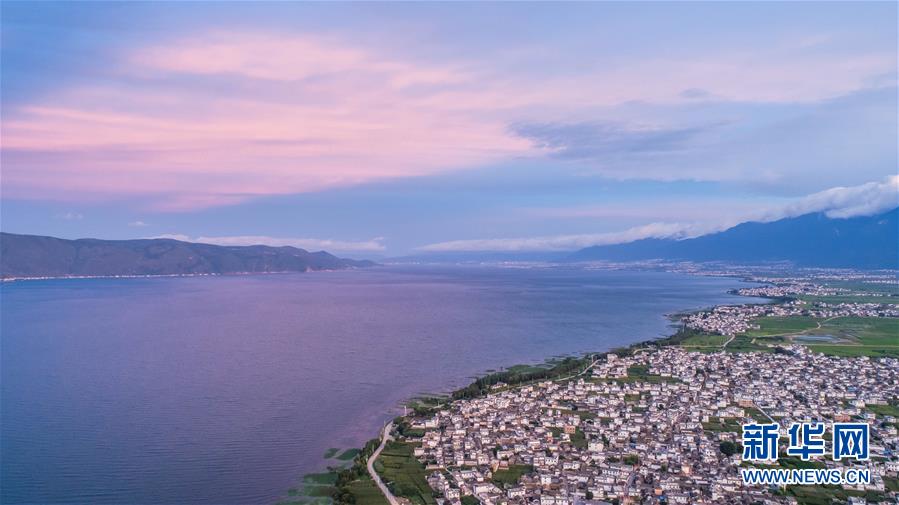 這是雲南大理洱海一景(2018年7月5日無人機拍攝)。 新華社記者 胡超 攝