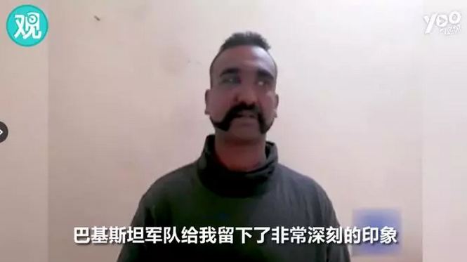 2月27日晚,巴基斯坦三軍公共關係部(ISPR)公佈了此前被俘虜的印度飛行員、空軍中校阿比南丹(Abhi Nandan)的最新視頻。