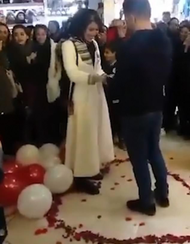 據BBC報道,近日,一個伊朗男子當眾向自己的女朋友求婚,從視頻畫面中可以看到,現場有很多氣球以及用花瓣圍成的愛心,女子在男子表達完愛意後,開心地點頭答應,並與男子深情地擁抱。