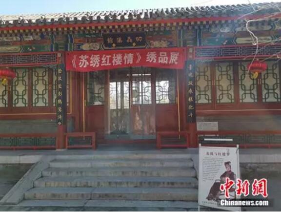 雖然凹晶溪館門上懸掛着“《蘇繡紅樓情》繡品展”的條幅,但館內卻是另一番景象。
