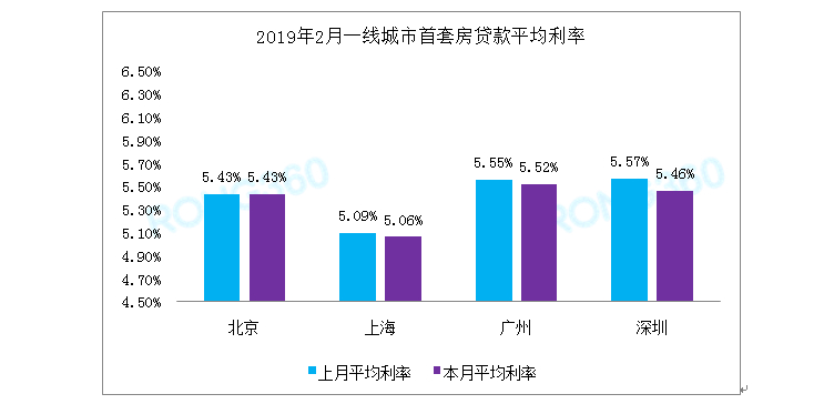 此外,上述監測數據顯示,在2019年2月首套房貸平均利率最低城市前十名中,上海、北京、深圳、廣州等一線城市分列第一、第四、第五、第十位。其中,深圳連跳6位擠入前十。