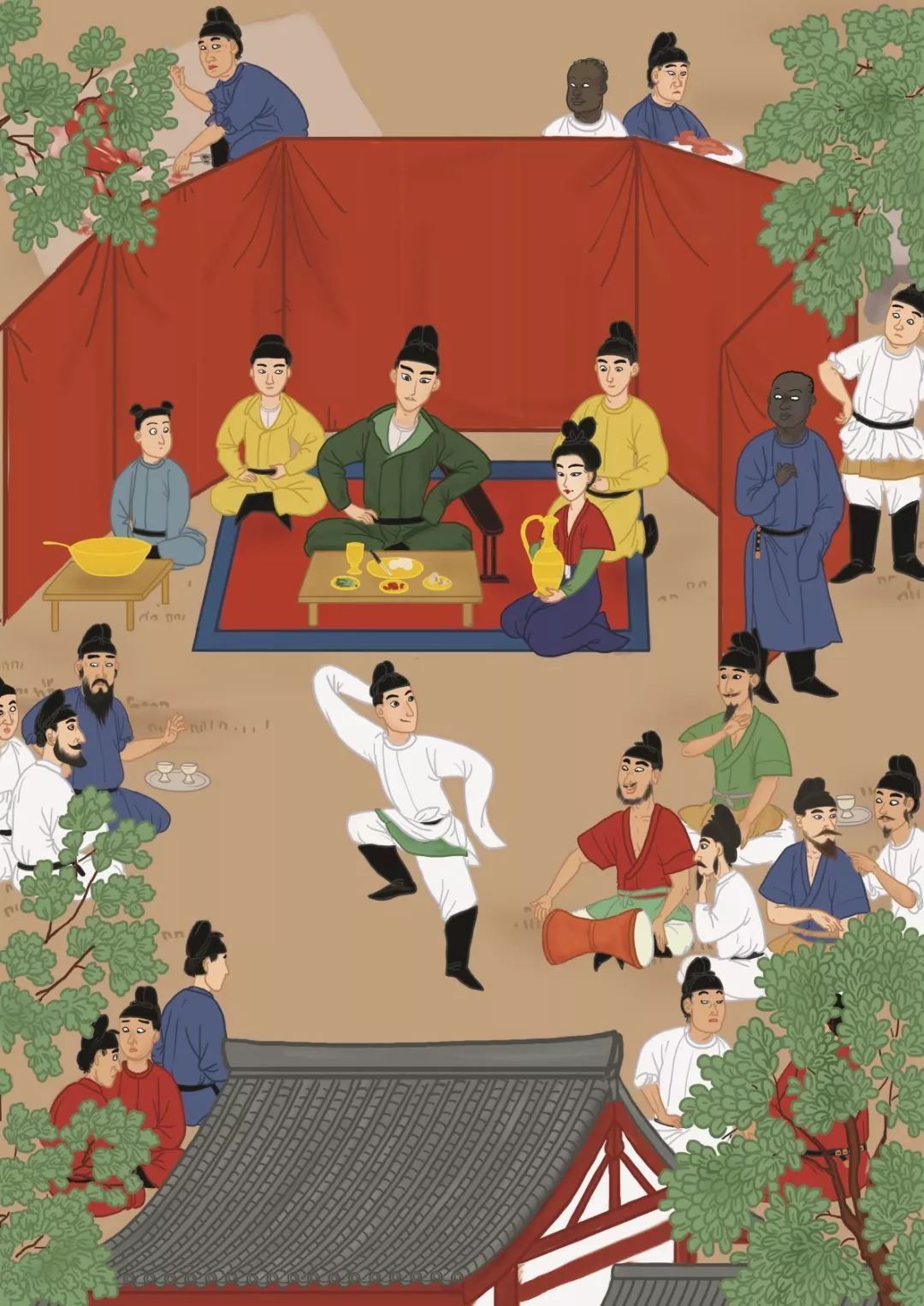 本文作者所著《盂蘭變》中描繪的唐代貴族在家苑觀賞樂工表演的情景(圖片來源@燕王wf)