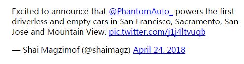 自動駕駛可謂是舉世皆知,而遠程駕駛確實稍顯冷門,幽靈汽車甚至在加州也遭遇過測試是否違法的尷尬。2018年4月24日,幽靈汽車公司CEO沙伊在推特上宣佈該公司第一個在硅谷測試無人駕駛汽車。儘管幽靈汽車在2017年12月就獲得了加州自動駕駛測試許可,但獲得的許可是有車內安全員的自動駕駛測試許可,並非無人駕駛測試許可。事實上,迄今為止,仍然只有Waymo獲得了加州無人駕駛測試的許可,幽靈汽車如此高調官宣似乎是在挑釁監管機構。