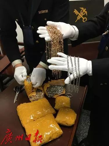 經開箱查驗,在上述行李中分別查獲未申報的黃金製品12.1、10.7和17.5千克。3名旅客聲稱這批黃金製品購於廣州,計劃銷往東南亞地區。