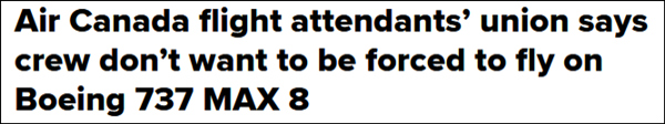 不滿波音737 MAX 機型繼續飛行的不止美國空乘,3月12日,加拿大公共僱員聯盟(CUPE,代表該國各行業65萬名職工)旗下的空乘部門發表聲明,稱埃航302航班墜毀後,加拿大航空公司的空乘人員擔心安全問題,他們不想被迫乘坐波音737 MAX 8飛機。