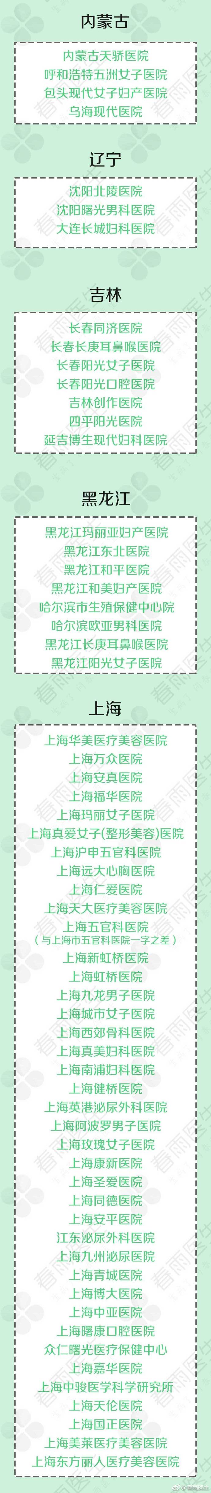 在這份春雨醫生自稱“吐血整理”的莆系醫院名單中可以看到,莆系醫院主要分佈在我國30多個省、自治區、直轄市。其中寧夏最少只有一家,比較多的省、市有上海、江蘇、安徽、廣東、雲南、四川、山東等。其中北京共有24家醫院被納入莆系醫院名單,它們是:北京美萊醫療美容醫院、北京儷人女子醫院、北京前海股骨頭醫院、北京五洲女子醫院、北京聖保羅男子醫院、北京建國醫院、北京天倫不孕不育醫院、北京瑪麗婦嬰醫院、北京美聯臣醫療美容醫院、北京恵中醫院、北京陽光麗人婦科醫院、北京恆安中醫院、北京京北醫院、北京京順醫院、北京瑞京糖尿病醫院、北京眾安康中醫骨科、北京麥瑞骨科醫院、北京華醫中西醫結合皮膚病醫院、北京德勝門中醫院、北京軍都醫院、北京慈康醫院、北京艾麗斯婦科醫院北京新興醫院。