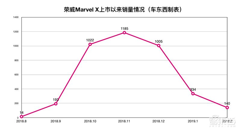 Marvel X於2018年8月30日才正式上市,所以其8月份的銷量只有14台,9月份應該還處於產能爬坡期,所以銷量只有193台,但到了10月份,銷量就直線上升到了1022台,並在11月、12月都保持1000+的銷量規模,但到了2019年,銷量卻直接下降至1月份的334台和2月份的140台。