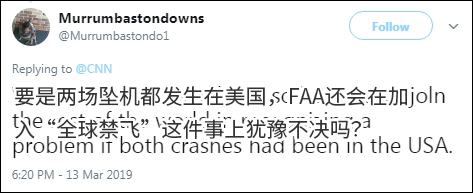 但美國政府與波音公司則選擇站737 MAX。交通部長趙小蘭12日親自搭乘同型飛機飛往華盛頓,波音公司總裁米倫伯格也在給員工的郵件中表示,對737 MAX的安全性“非常有信心”。