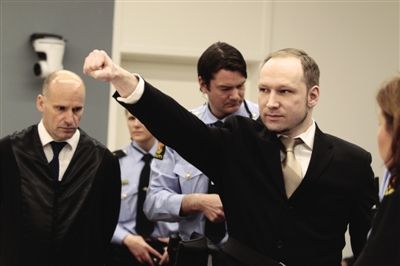 佈雷維克2011年在挪威射殺69人、打傷66人,出庭時做出納粹禮手勢