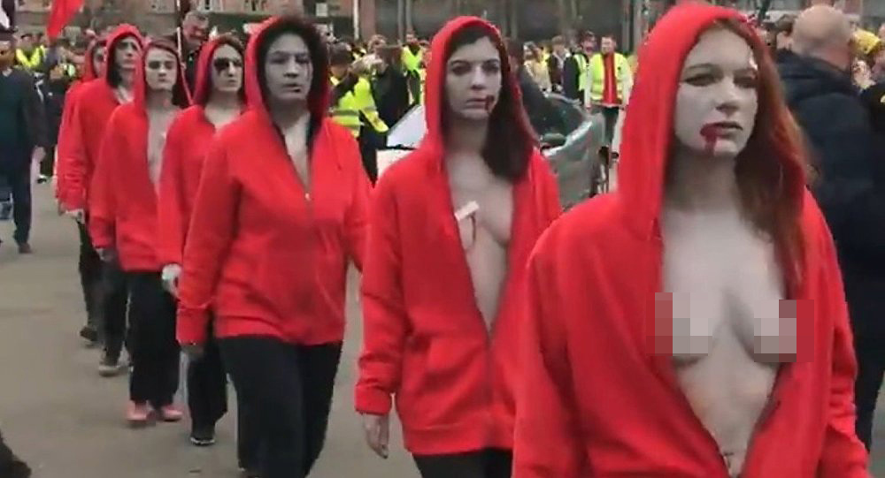 這種形式的抗議在“黃背心”運動中不是第一次出現。去年12月15日,5名女性身穿紅色連帽上衣,身體和臉塗成青銅色,在街上與防暴警察對峙。