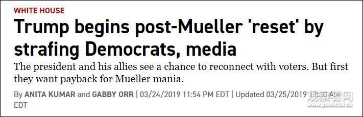 POLITICO新聞網也覺得,被穆勒纏身22個月的特朗普,現在終於可以擺脱他了,在“後穆勒時代”,特朗普將“掃射”民主黨和媒體,重新開啓“後穆勒時代”。