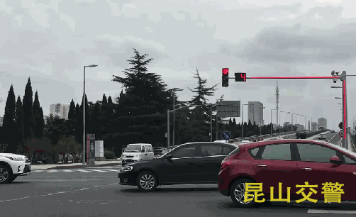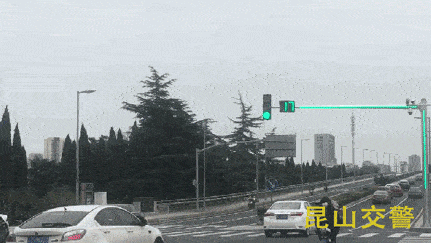 3月21日晚上,崑山交警在當地震川路、黑龍江路路口東西南北四個方向設置了四個“新型信號燈”。