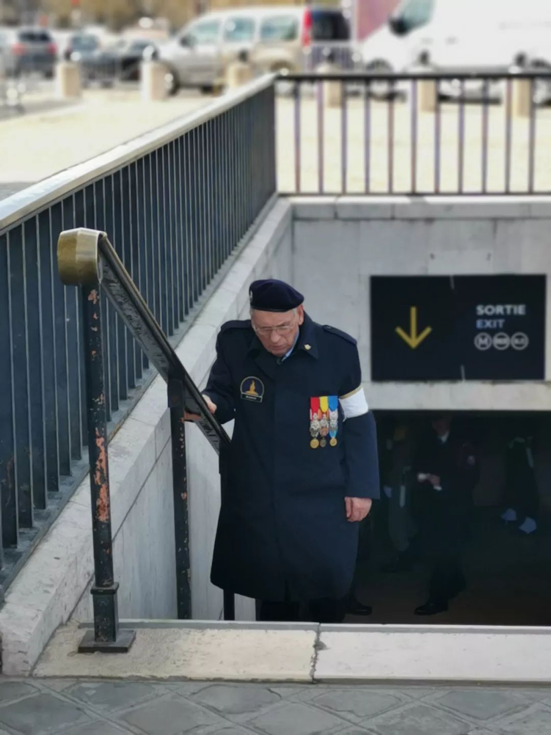 △前來參加歡迎儀式的法國老戰士(央視記者張曉鵬拍攝)
