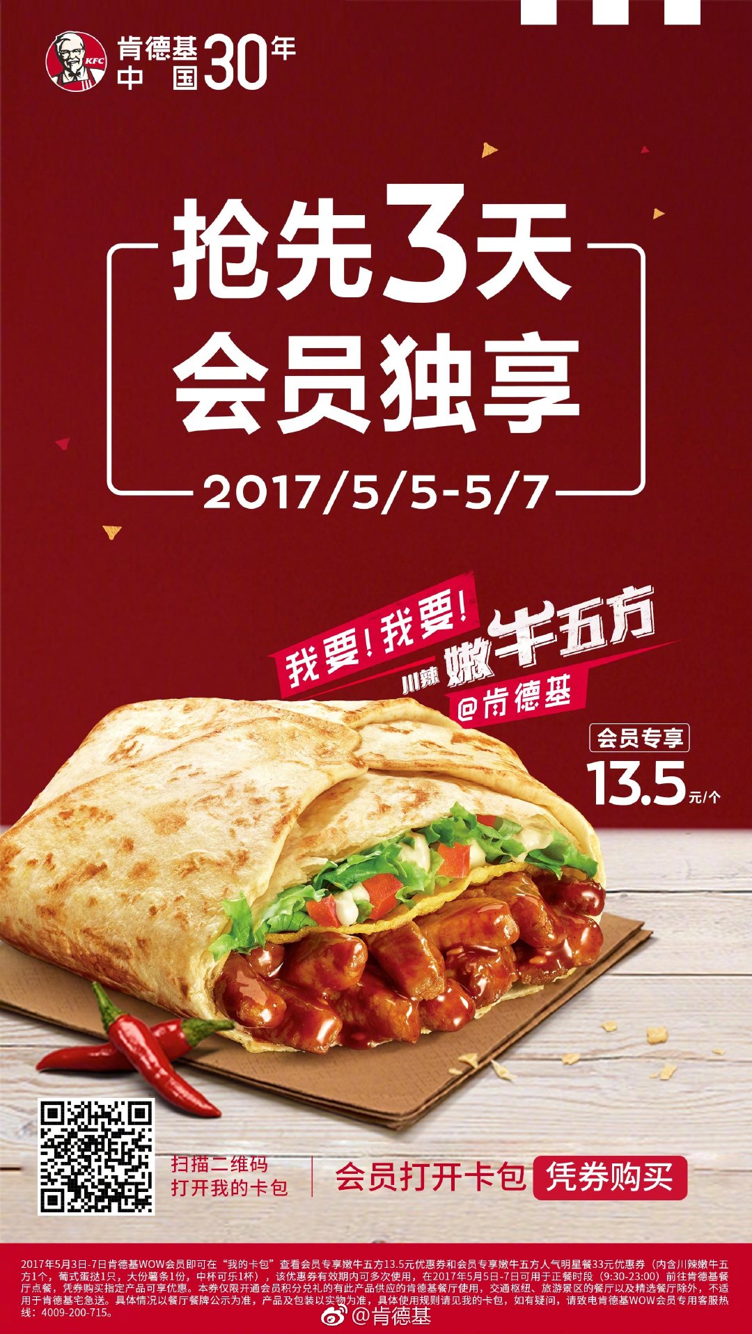 2017年,肯德基為了紀念入駐中國30週年,宣佈讓“千呼萬喚”的嫩牛五方在5月迴歸。“牛粉”們為此激動了好一陣,但沒過多久,又下架了。