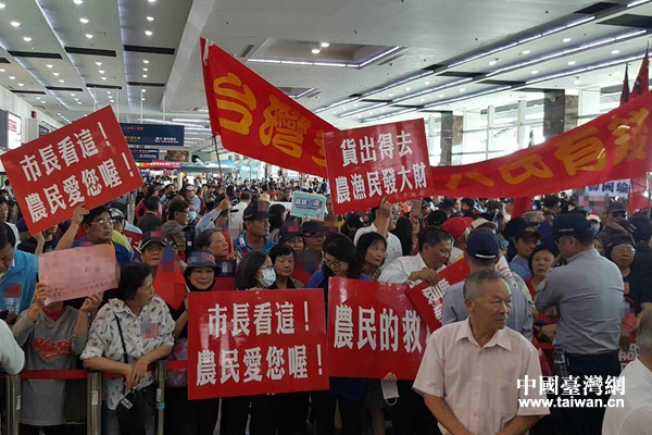 接機人羣高舉“農民的救星”、“貨出得去,農漁民發大財”等標語,表達對韓國瑜的感恩之情。不過人羣中也混進“獨派”趁機鬧事。