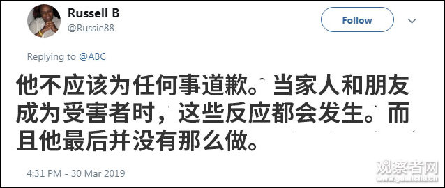 在他道歉後,仍然有不少網友不買賬,認為尼森沒有正面回答自己的“種族主義、白人至上主義和白人特權”等思想。