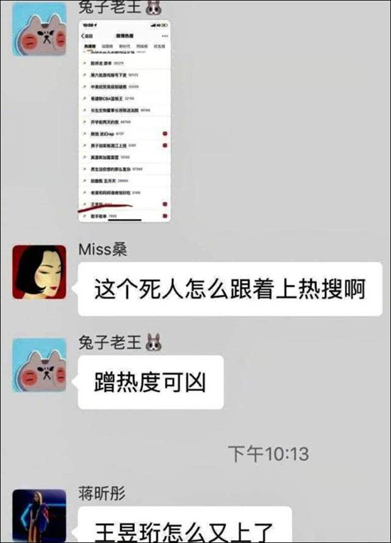 4月1日,黑幕真相未明,又另生枝節。網上曝出《最強大腦》節目組的工作羣聊,諷刺前幾季的選手王昱珩“蹭熱度”,桑潔更是直接開罵:“這個死人怎麼跟着上熱搜”?