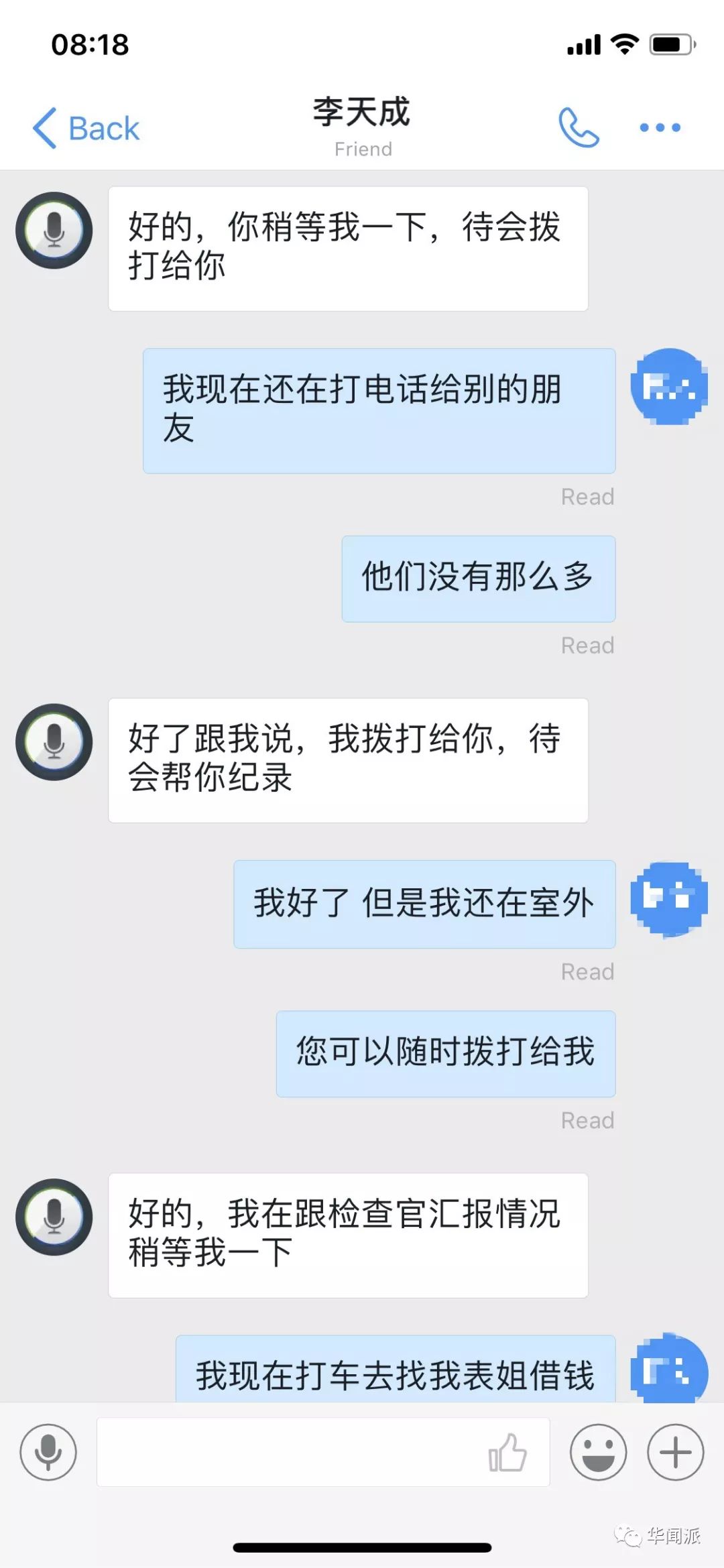 於是小胡當時用ipad 撥通了爸爸的微信電話,同時這個假警官也一直和他在保持通話 。果不不其然,小胡爸爸拒絕了他的借錢要求。