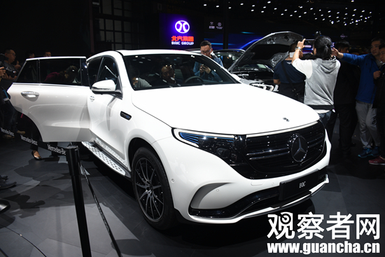 大量參展觀眾圍觀奔馳EQC,EQC搭載了容量為70kWh的電池組,綜合續航里程500km以上