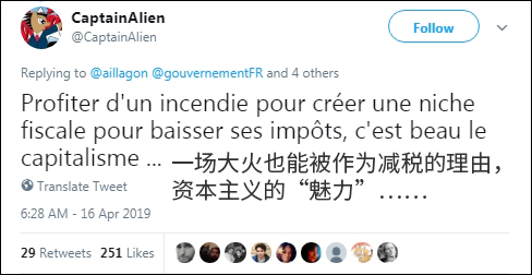 法國工會組織、左翼黨派也質疑,富翁們利用災難洗白自己的名聲,卻對社會的貧富差距視而不見。