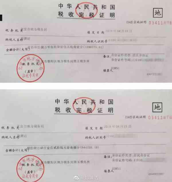 對於網友質疑自己圖書的銷量問題,鄭淵潔也拿出“實錘”,曬出2018年圖書銷售的部分税單,表示自己的收入幾乎全是版税。曬出兩張税單面額分別為1380575.61元和844126.18元。