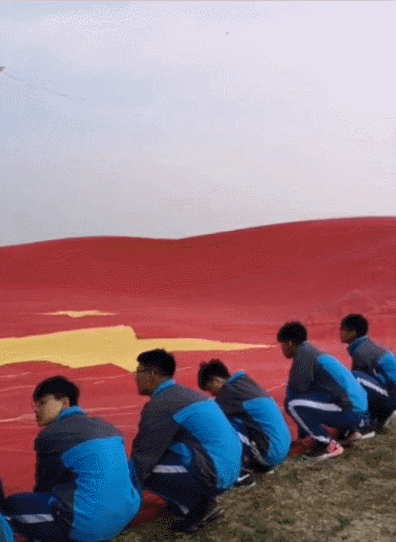 面積960平方米的國旗風箏首次亮相,風箏長37.95米,寬27.3米,按照國旗的標準比例製作。