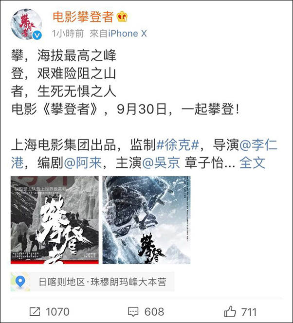 吳京聯手成龍張譯胡歌,《攀登者》殺青定檔9月30日!