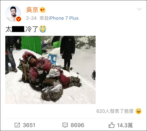 《攀登者》於早前1月開始拍攝工作,而主演吳京的微博上也有一直更新在雪域高原爬山的訓練動態。因為要在被冰雪覆蓋的珠峯取景拍攝,為求還原歷史真實的情況,訓練過程和拍攝工作都異常艱辛,參與電影的演員及工作人員有遇高原反應,甚至缺氧險情。