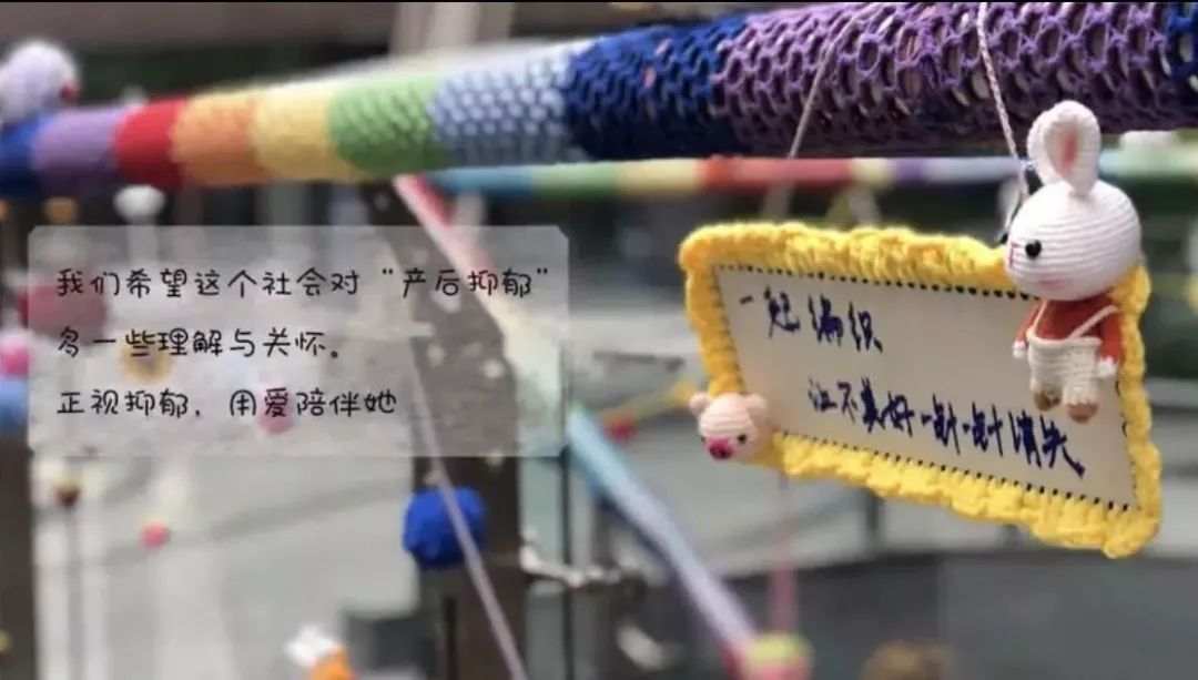 為欄杆織上彩虹毛衣,希望給產後媽媽多些關懷